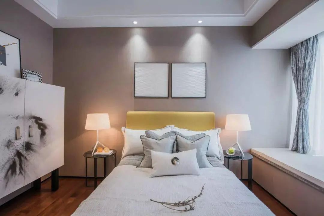 主臥延續(xù)了整個(gè)空間的簡(jiǎn)約素雅調(diào)性,整體以灰色為主調(diào),優(yōu)雅冷靜,明黃是起到中和的作用,增添了臥室空間的舒適感。